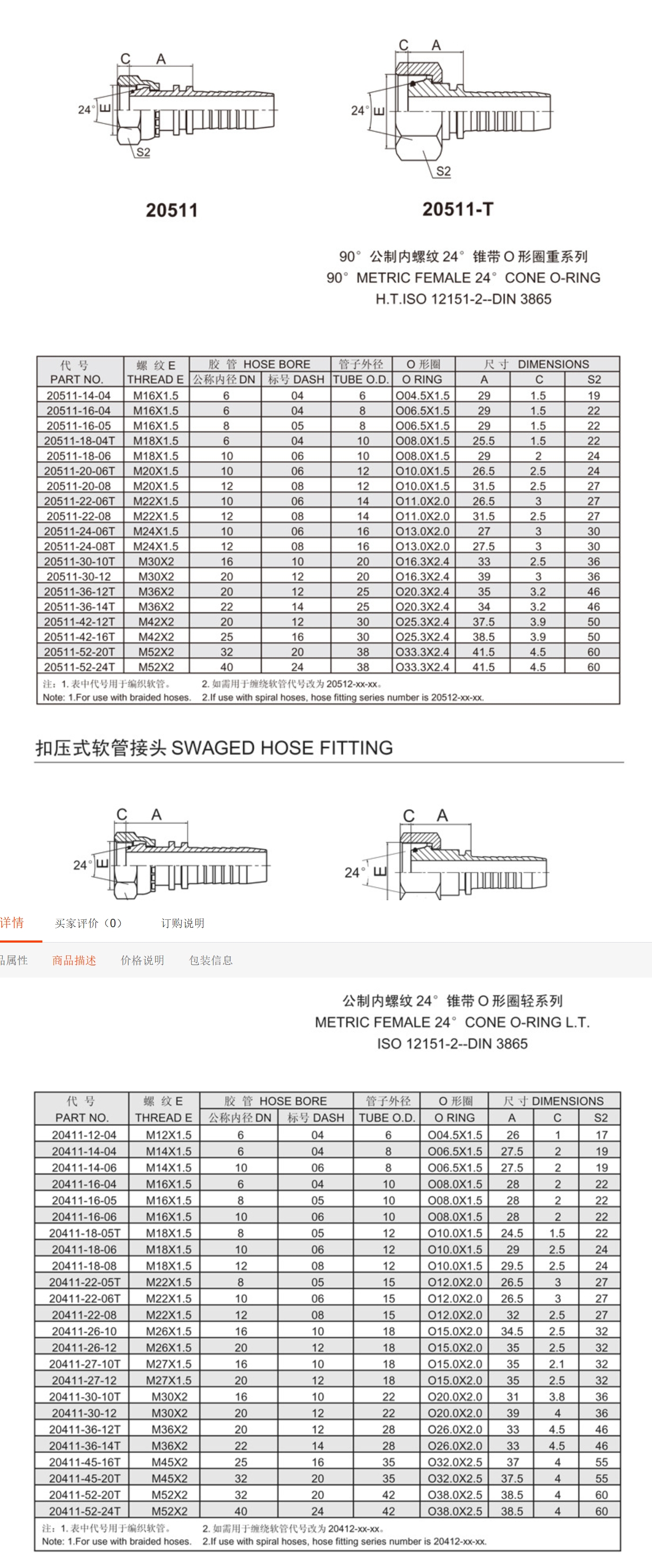 伊顿标准20411 20511一体式扣压H型内螺纹24°锥密封O 圈胶管接头